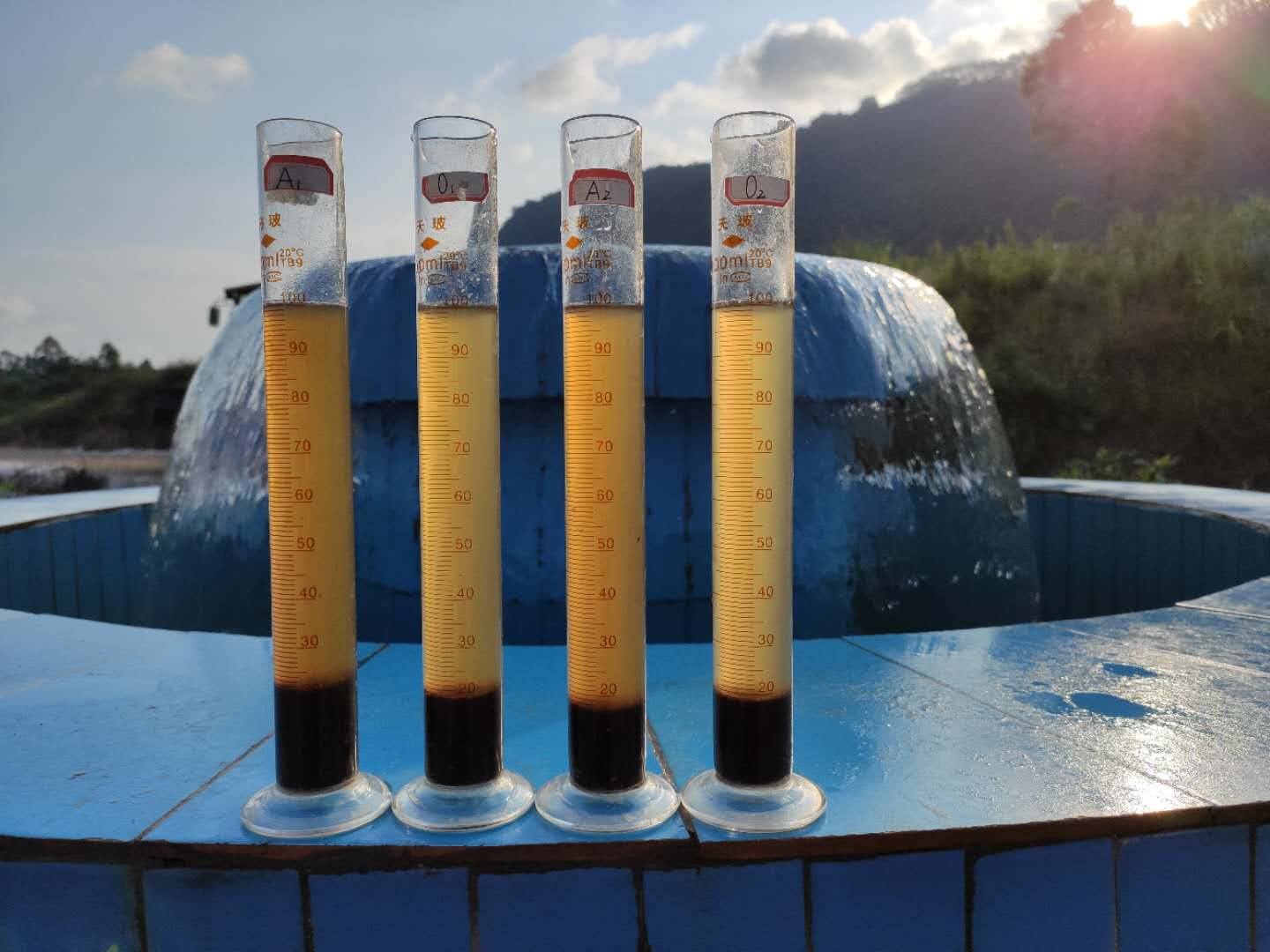 該項目存欄為10000頭母豬,清糞工藝采用V刮+水泡。因地制宜我司采用黑膜結(jié)構(gòu)的厭氧+兩級AO+配水塘工藝。此工藝投資成本低、運行穩(wěn)定、耐沖擊負荷能力強,實際出水指標達到《綜合一級排放標準》。設(shè)備+土建投資成本約1萬元/噸污水。
